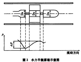 由于流體通過渦輪時會對渦輪產生一個軸向推力,使軸承的摩擦轉矩增大,加速鈾承磨損,為了消除軸向力,需在結構上采取水力平衡措施,這方法的原理見圖2所示。由于渦輪處直徑DH略小于前后支架處直徑Ds,所以,在渦輪段流通截面擴大,流速降低,使流體靜壓上升△P,這個△P的靜壓將起到抵消部分軸向推力的作用。