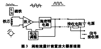 前置放大器由磁電感應轉換器與放大整形電路兩部分組成,示意圖見圖3所示。