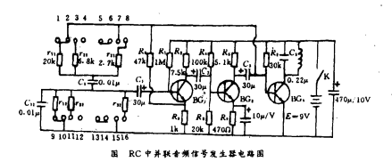 診斷器是一個RC串并聯(lián)網(wǎng)絡(luò)低頻振蕩器,經(jīng)LC諧頻放大的音頻信號發(fā)生器見圖,圖中BG1、BG2、BG3均為3DG6D。