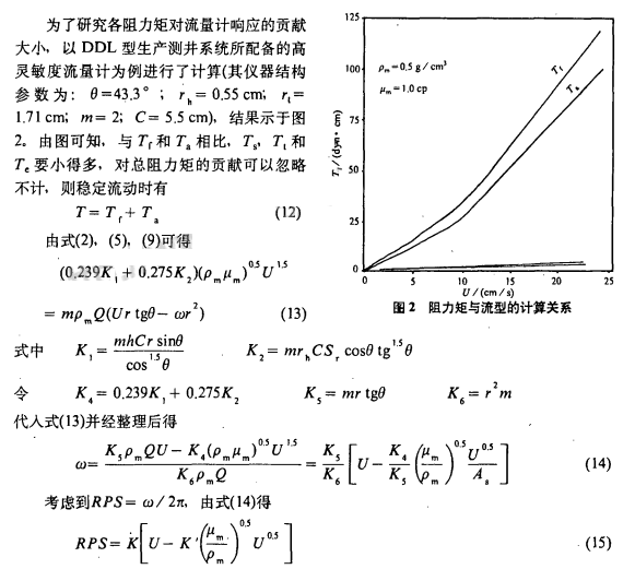 1)影響渦輪流量計(jì)葉輪響應(yīng)的阻力矩主要是葉片摩擦阻力矩和軸承外表面阻力矩;影響渦輪流量計(jì)測(cè)量值得主要因素是流速大小和動(dòng)力粘度分布。