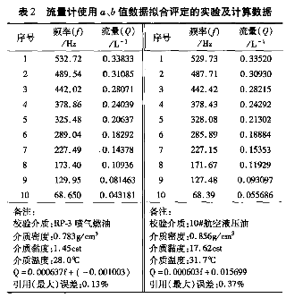 數(shù)據(jù)說(shuō)明:為了更直觀地探討流量計(jì)在合理選擇誤差評(píng)定的方法以及由此涉及儀表計(jì)量特性等具體因素的影響,故在表1和表2中均分別以航空RP-3號(hào)噴氣燃油(低黏度)、航空10號(hào)液壓油(中黏度)為檢定介質(zhì)在相同的量程下檢定分別出2組數(shù)據(jù);表1中誤差評(píng)定的計(jì)算公式來(lái)自JJG1037-2008《渦輪流量計(jì)檢定規(guī)程》(以下簡(jiǎn)稱(chēng)規(guī)程)中(1)~(4),得出示值誤差(線(xiàn)性度);表2中誤差評(píng)定的計(jì)算來(lái)自*小二乘法運(yùn)算公式算出值進(jìn)行數(shù)據(jù)擬合求出理論值,*后得出儀表的引用誤差。此計(jì)算公式來(lái)自為《規(guī)程》以外的誤差評(píng)定方法。