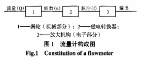 流量計(jì)通常由渦輪(機(jī)械部分)、磁電轉(zhuǎn)換器、放大機(jī)構(gòu)(電子部分)等組成。