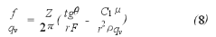 在紊流流動(dòng)狀態(tài)時(shí),流體流動(dòng)阻力與流體密度ρ和流量qv成正比,此時(shí)可不計(jì)流體粘度的影響,故Trf=C2 ρqv²,式中C2 為常數(shù),代入式(7)得: