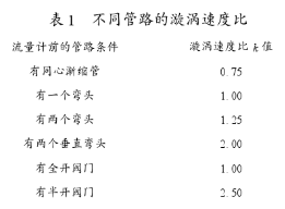 式中:L—上游直管段長(zhǎng)度;f—管道內(nèi)摩擦系數(shù),處于紊流狀態(tài)時(shí)f=0.0175;Dg—流量計(jì)的公稱直徑;k—漩渦速度比,由流量計(jì)前管路情況確定(見表1)。