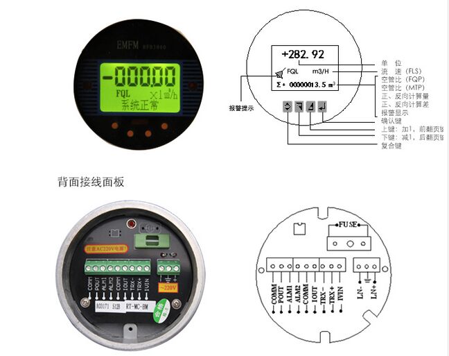 儀表顯示:高清晰度背光LCD顯示(126 x 48 點陣),可同時顯示瞬時、累積流量等信息與相關(guān)單位,中文/英文菜單支持