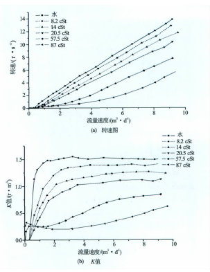 圖1柴油流量計(jì)dn15對(duì)不同茹度條件的響應(yīng)轉(zhuǎn)速圖和K值
