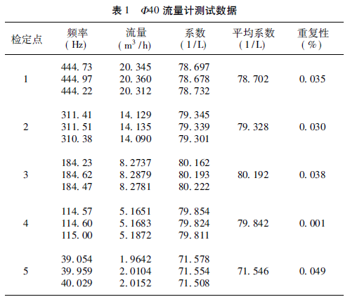 此次試驗(yàn)測(cè)試選用兩臺(tái)色拉油流量計(jì),口徑分別為Φ40、Φ25,主要考慮40 和25 口徑的流量計(jì)應(yīng)用較多,同時(shí)流量銜接,更具有代表性。其主要參數(shù)如下: