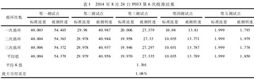 為了驗(yàn)證可行性,采用室內(nèi)校準(zhǔn)實(shí)現(xiàn)。機(jī)加組裝2支型號(hào)HK-ZS-40儀器,編號(hào)為P033、P032,2支HK-ZS-20儀器,編號(hào)為K001、K018,進(jìn)行室內(nèi)流量校準(zhǔn)。校準(zhǔn)介質(zhì):自來水。從2014年5月13日到2014年9月20日,先后校準(zhǔn)阻抗儀40多次。