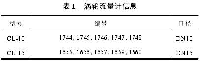試驗用流量計是智能渦輪流量計,CL-10和CL-15各5支,流量計信息見表1。