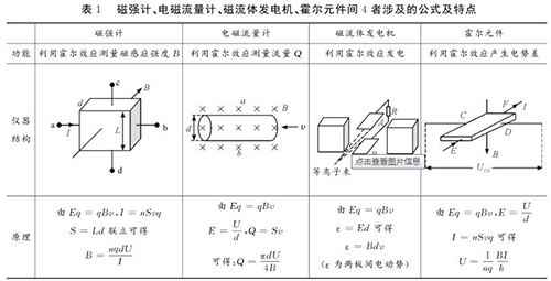 易錯(cuò)點(diǎn)2:磁強(qiáng)計(jì)、熱水計(jì)量表、磁流體發(fā)電機(jī)、霍爾元件間的區(qū)別與聯(lián)系磁強(qiáng)計(jì)、熱水計(jì)量表、磁流體發(fā)電機(jī)、霍爾元件都是利用電磁場對帶電粒子的偏轉(zhuǎn)效應(yīng),并且穩(wěn)定時(shí)電場力與磁場力均達(dá)到平衡。很多學(xué)生容易將其混淆,遇到問題常常搞不清原理,亂代公式,筆者特將4者涉及的公式及特點(diǎn)等做一對比區(qū)別如表1所示。