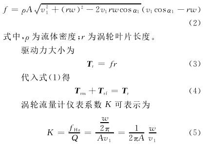 渦輪在轉動時所受的力矩大致可分:流體對渦輪的推動力矩Tr,機械摩擦力矩Trm,流體對渦輪產(chǎn)生的流動阻力矩Trf和電磁阻力矩Tre。渦輪運動方程可以表示為