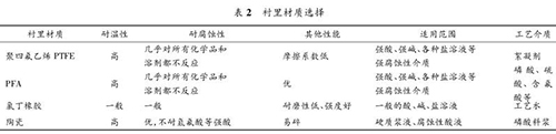 純化水流量表要根據(jù)被測流體的溫度、壓力、速度以及含固顆粒的硬度、含量和粒徑大小來決定測量管內(nèi)襯的材質(zhì)。該濕法磷酸裝置中,純化水流量表測量管襯里材質(zhì)的種類見表 2。