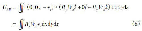 式中V為注水流量計(jì)傳感器測(cè)量空間;W→為權(quán)函數(shù)。在直角坐標(biāo)系(x,y,z)中,式(5)可以轉(zhuǎn)換為