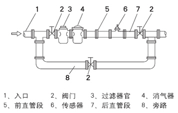 流量調(diào)節(jié)閥應(yīng)裝在傳感器下游.上游側(cè)的截止閥測(cè)量時(shí)應(yīng)全開(kāi).且這些閥門都不得產(chǎn)生振動(dòng)和向外泄漏。