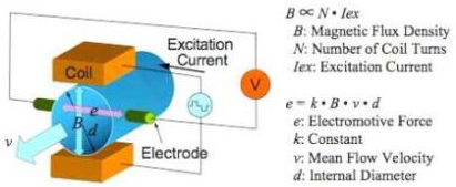 使用智能空調(diào)水流量計(jì)測量的液體流量必須導(dǎo)電是非常重要的。法拉*定律表明,信號(hào)電壓(E)取決于平均液體速度(V),導(dǎo)體的長度(D)和磁場強(qiáng)度(B)。因此,將在管的橫截面中建立磁場。