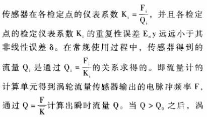 對于重復性很好而線性度較差的渦輪流量傳感器,要擴大其測量范圍或減小測量誤差,研究的核心問題是設計一-種便捷的使用方法,按照行鑒定規(guī)程利用原有檢定數(shù)據(jù),使渦輪流量傳感器在具有很小重復性誤差的流量范圍內,都能得到很準確測量效果。