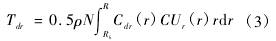 通過對輪轂半徑Rh到葉頂半徑Rt的驅(qū)動力矩進行積分可以獲得作用在整個葉片上的驅(qū)動力矩Tdr(不含黏性影響):