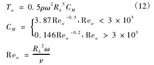 根據(jù)同軸圓筒黏性阻力矩計算方法可得軸承黏性阻力矩Tb