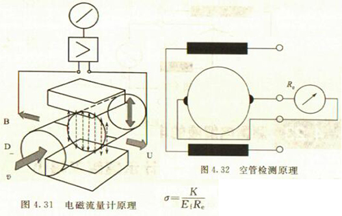 智能渦輪流量計是專為測量導電液體的體積流量而設計的。測量原理是基于法拉*電磁感應定律。按照該定律,導電流體通過磁場作切割磁力線運動時,在垂直于磁場及流速的方向上產生感應電動勢,此電動勢由4.14節(jié)中的式4.24)給出。其原理如圖4.31所示。