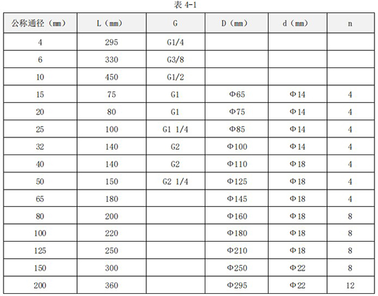 四、渦輪流量計(jì)外形尺寸參數(shù)