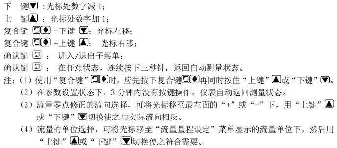 如果用戶認(rèn)為調(diào)試時(shí)的流體方向?yàn)檎?,而補(bǔ)水流量計(jì)顯示為負(fù),則將流量方向設(shè)定反向,反之亦然。