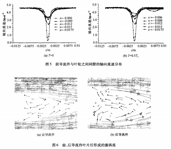 1)前導流件葉片后的尾流影響進入葉輪入口流體速度分布,也是導致合力矩系數(shù)Cm**問發(fā)生變化的主要原因,從而影響葉輪的旋轉特性。
