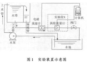 實(shí)驗(yàn)是在天津大學(xué)天津市過(guò)程參數(shù)檢測(cè)與控制重點(diǎn)實(shí)驗(yàn)室的水流量標(biāo)準(zhǔn)裝置上完成的,實(shí)驗(yàn)管徑為100mm,圖1為實(shí)驗(yàn)裝置示意圖。